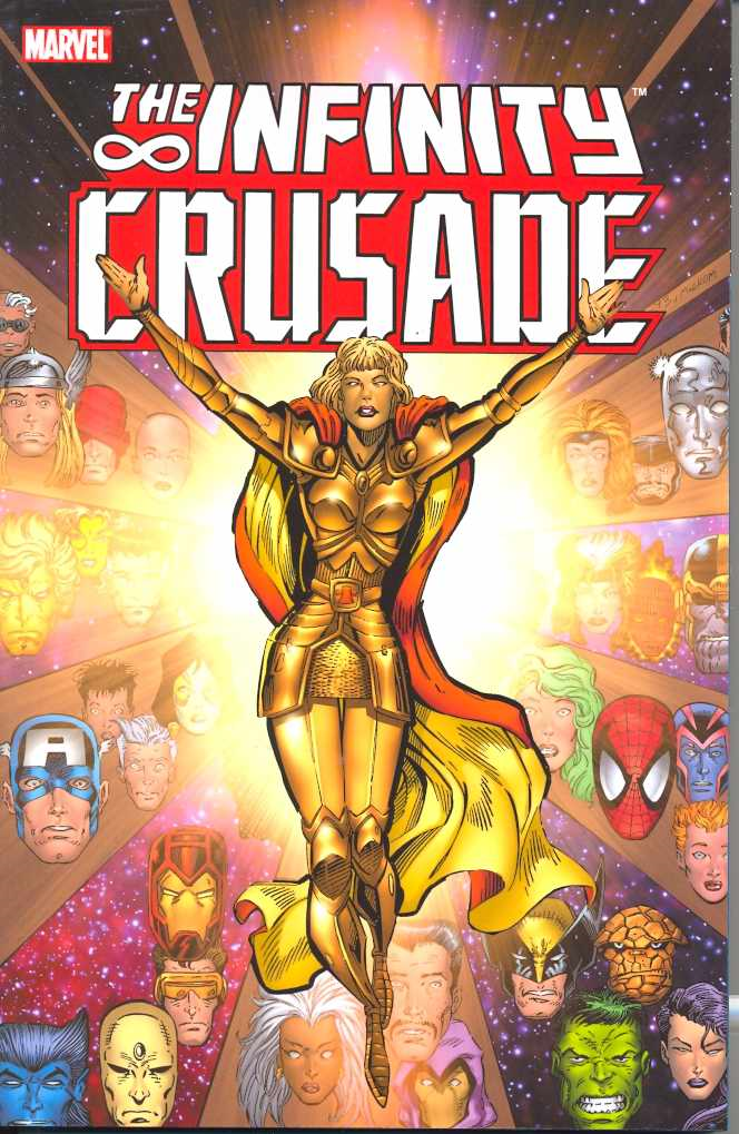 She’s come to stop crime across the globe and bring peace to the universe. Captain America and Spider-Man are on her side; Thanos and Mephisto stand against her. So how can she be the bad guy? Jim Starlin’s 1990s cosmic collection culminates when the Fantastic Four, the X-Men, the Avengers, the Infinity Watch, the New Warriors and most other super-hero teams of the time are split by a universal crisis…of faith! Also featuring the Mole Man, the Absorbing Man and other classic characters! Collecting INFINITY CRUSADE #1-3, WARLOCK CHRONICLES #1-3 and WARLOCK AND THE INFINITY WATCH #18-19.