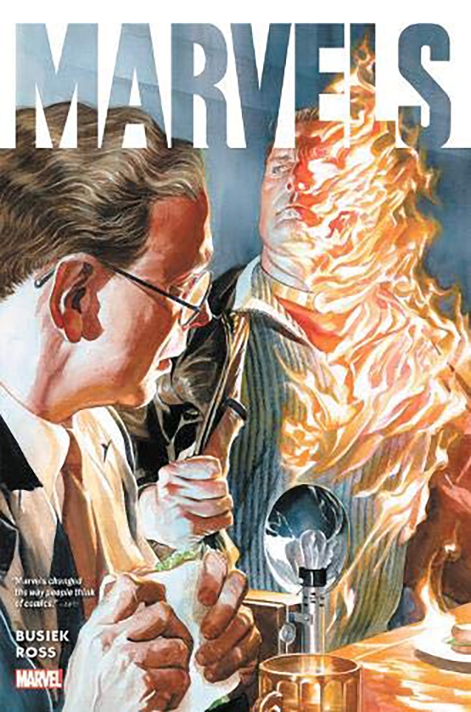 The timeless classic that changed the way we look at Marvel super heroes celebrates its 25th birthday in style! Kurt Busiek and Alex Ross’ original tour through the early history of the Marvels – as captured through the lens of photojournalist Phil Sheldon – is collected in full! Then, Busiek and Ross reunite for an amazing new epilogue featuring the all-new, all-different X-Men in deadly battle against the Sentinels – with the now-retired Phil and his daughters caught in the middle! Plus: A behind-the-scenes look at the creation of the epilogue; scripts, sketches and scores of other bonus features and a stunning gallery of variant covers paying tribute to the 25th anniversary of MARVELS! Collecting MARVELS #0-4, MARVELS EPILOGUE, MARVELS 25TH TRIBUTE VARIANTS and material from MARVELS ANNOTATED #1-4.