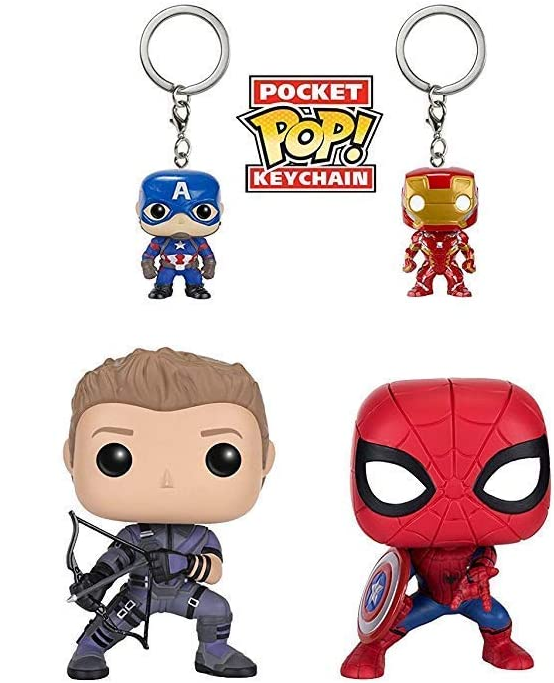 FUNKO POP HAWKEYE SPIDER-MAN WITH CAPTAIN AMERICA AND IRON MAN KEYCHAINS 4-PACK – Henk Comics